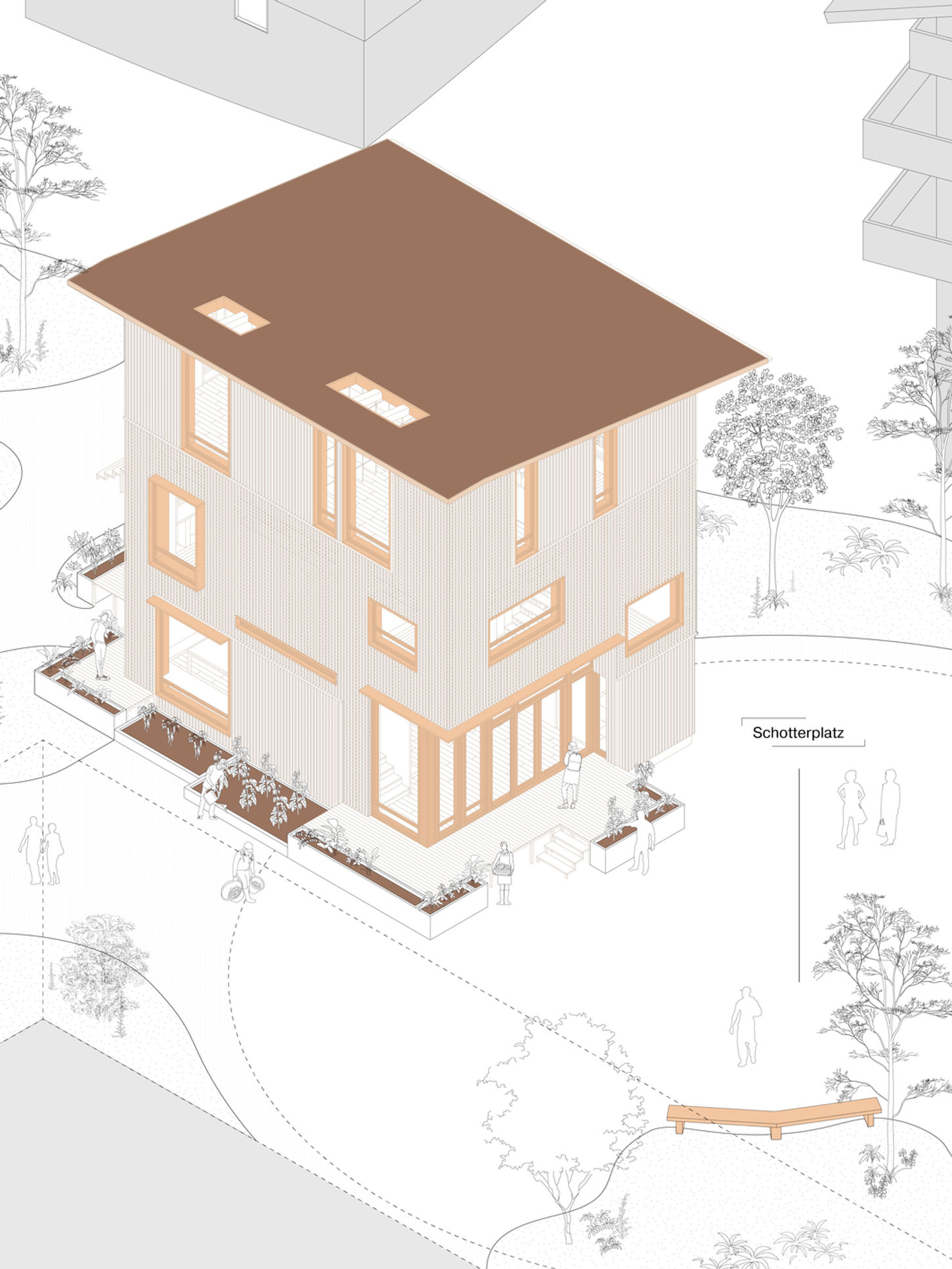 Reduktion auf das Essentielle. WABI SABI beschäftigt sich mit der Idee, konventionelle Raumabfolgen zu überdenken. Dabei sollen die unterschiedlichen Zonen und deren soziale Anforderungen optimiert und aufeinander abgestimmt werden. Das Nachhaltigkeitskonzept beruht auf drei Schlüsselelementen: der Raumtypologie der Raumklimaschichtung, der Kombination der natürlichen Baumaterialien Stroh, Lehm und Holz und der Integration sozialer Aspekte. Die Raumklimaschichtung ermöglicht eine effiziente Nutzung von Raum und Energie, indem sie natürliche Temperaturunterschiede im Gebäudeinneren nutzt. Die Verwendung von Stroh, Lehm und Holz als Baumaterialien reduziert nicht nur den ökologischen Fußabdruck, sondern schafft auch ein behagliches Raumklima. Der Entwurf nutzt Wärmegradienten, um die Räume funktional und programmatisch zu organisieren. Im neuen Konzept erhält jeder Raum eine spezifische klimatische Eigenschaft, die sich positiv auf die benachbarten Bereiche auswirkt. Diese vielseitige Anordnung schafft eine Verbindung von Funktion, Klima und Effizienz.