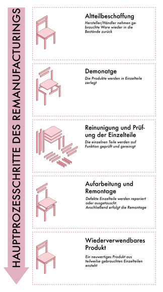 Das Remanufacturing oder auch Refabrikation genannt, kommt ursprünglich aus dem Industriesektor und beschreibt eine Behandlung zur Wiederverwendung eines gebrauchten Produktes oder dessen einzelnen Komponenten. Prinzipiell trägt das Remanufacturing zur Verlängerung der Lebensdauer eines Bauteils oder ganzer Gebäude bei und bietet somit eine ressourceneffiziente Alternative.